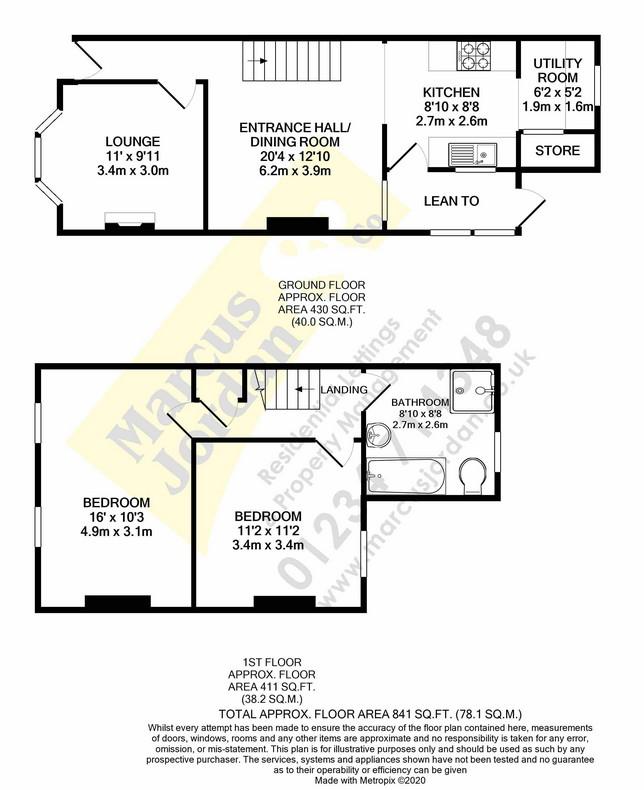 Accommodation briefly comprises entrance hall, sitting room with feature fireplace, dining room, fully fitted kitchen with white goods, utility room, two double bedrooms and a bathroom with a separate shower and bath.