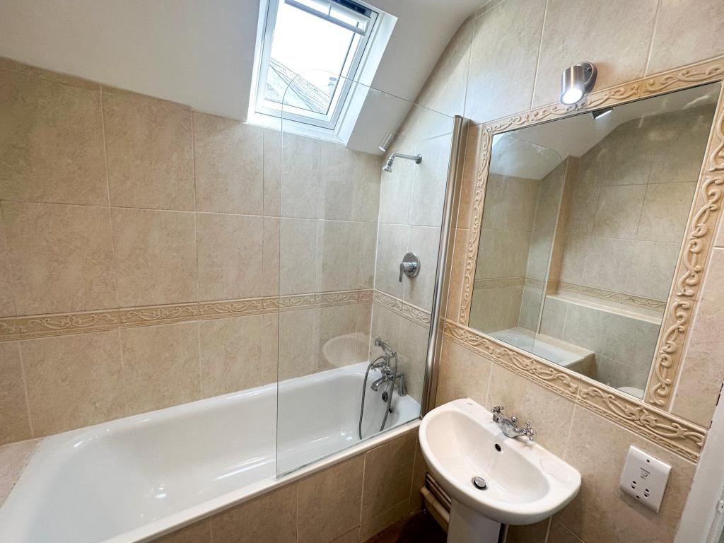 The property comprises an open plan living room leading to a fully fitted kitchen with white goods. Upstairs is a double bedroom and a bathroom with a shower fitted over the bath.