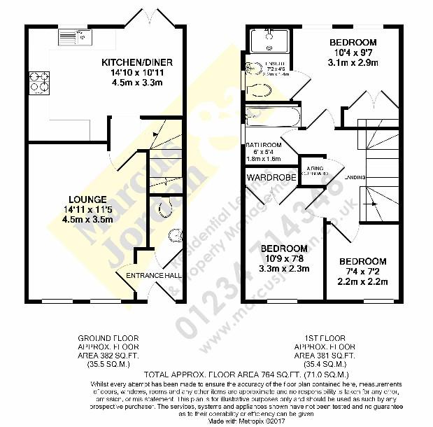 Accommodation on the ground floor briefly comprises entrance hall, W.C, living room and a kitchen/dining room with French doors to the rear garden. On the first floor there three bedrooms, an en-suite shower room and a house bathroom.