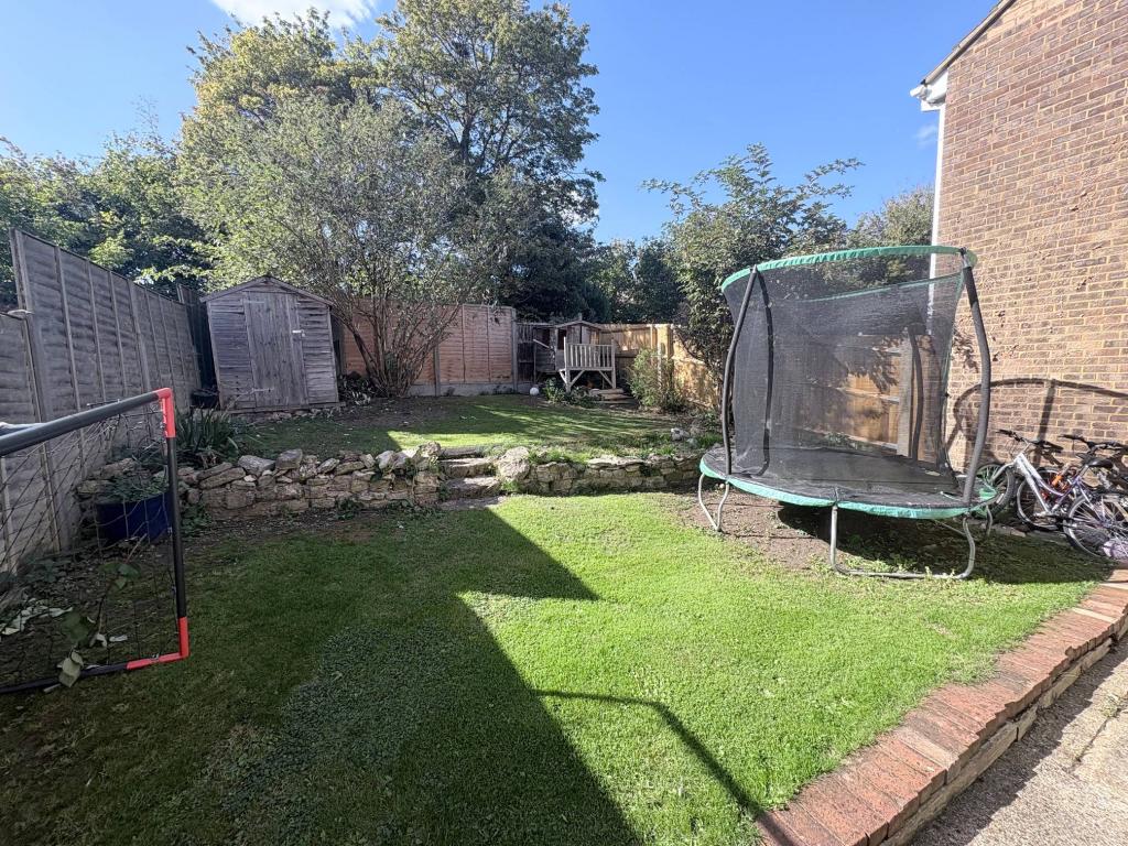Outside, the rear garden is fully enclosed and mainly laid to lawn, arranged over two levels to provide both practicality and charm.