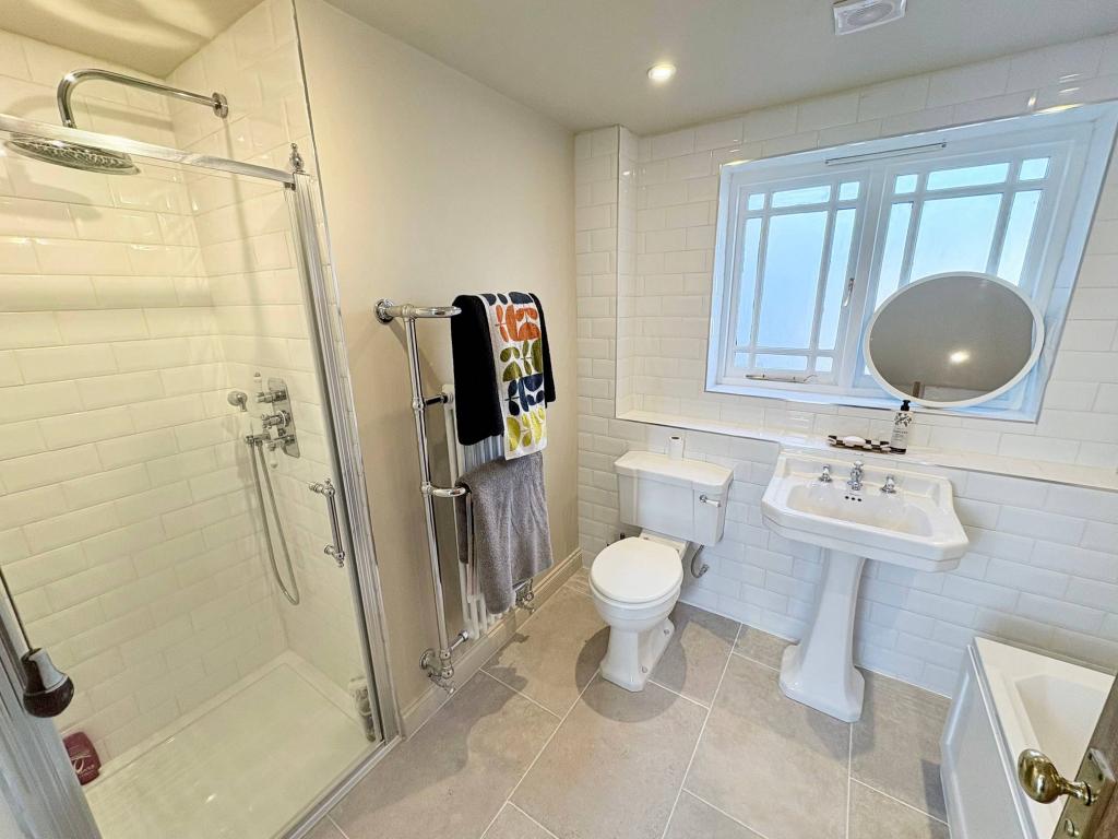 On the first floor, you will find two well-proportioned double bedrooms along with a newly installed family bathroom, complete with both a full-sized bathtub and a separate shower enclosure.