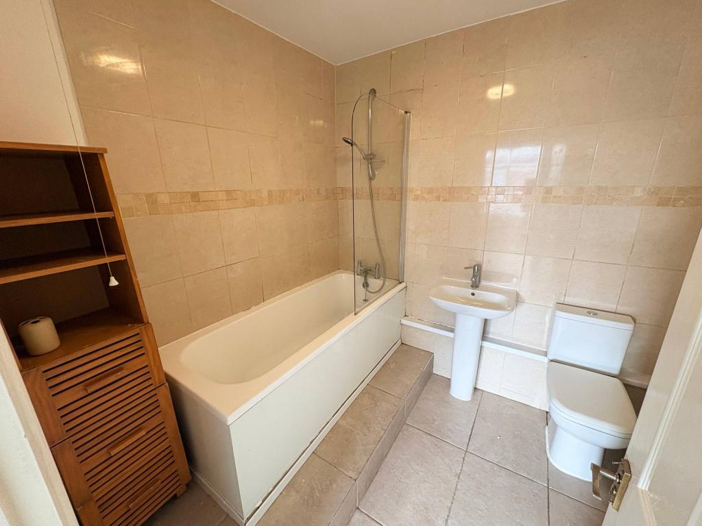 - Bathroom with shower over the bath